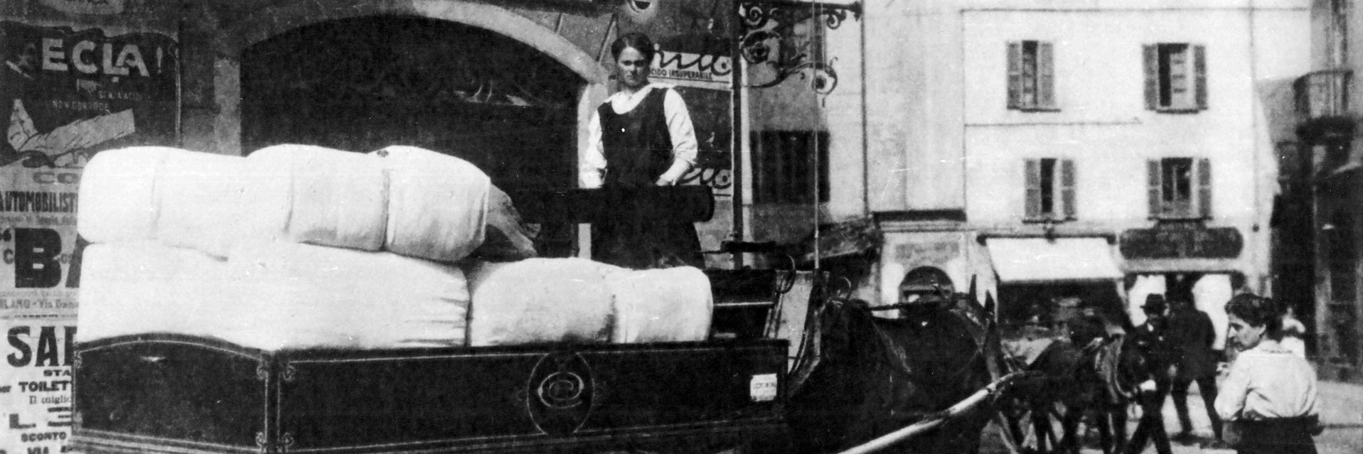 We started delivering linens by horse-drawn cart. Horses are present in various instances of Pedersoli Milano’s communication, but Romeo was the one that pulled that first cart. To this day, he is our symbol: the rampant horse – strong and dynamic – in front of our headquarters in Assago.